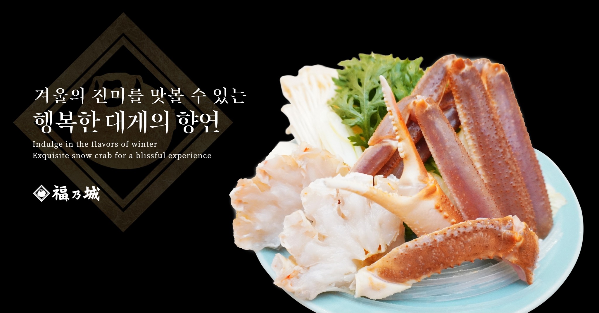 후구노시로에서는 제철 식재료를 풍성하게 맛볼 수 있는 다양한 코스를 준비했습니다. 그중에서도 이 계절에 추천드리는 것은 「코우라 코스 (9,800엔)」입니다. 부드러운 육수에 게살을 넣어 끓이는 최고급 ‘가니스키’를 시작으로, 게 회, 게 구이, 튀김, 진한 게 내장까지 게의 매력을 남김없이 즐길 수 있는 최고의 코스입니다. 마무리로는 게의 감칠맛이 스며든 죽을 천천히 즐기며 여운을 만끽하시기 바랍니다。