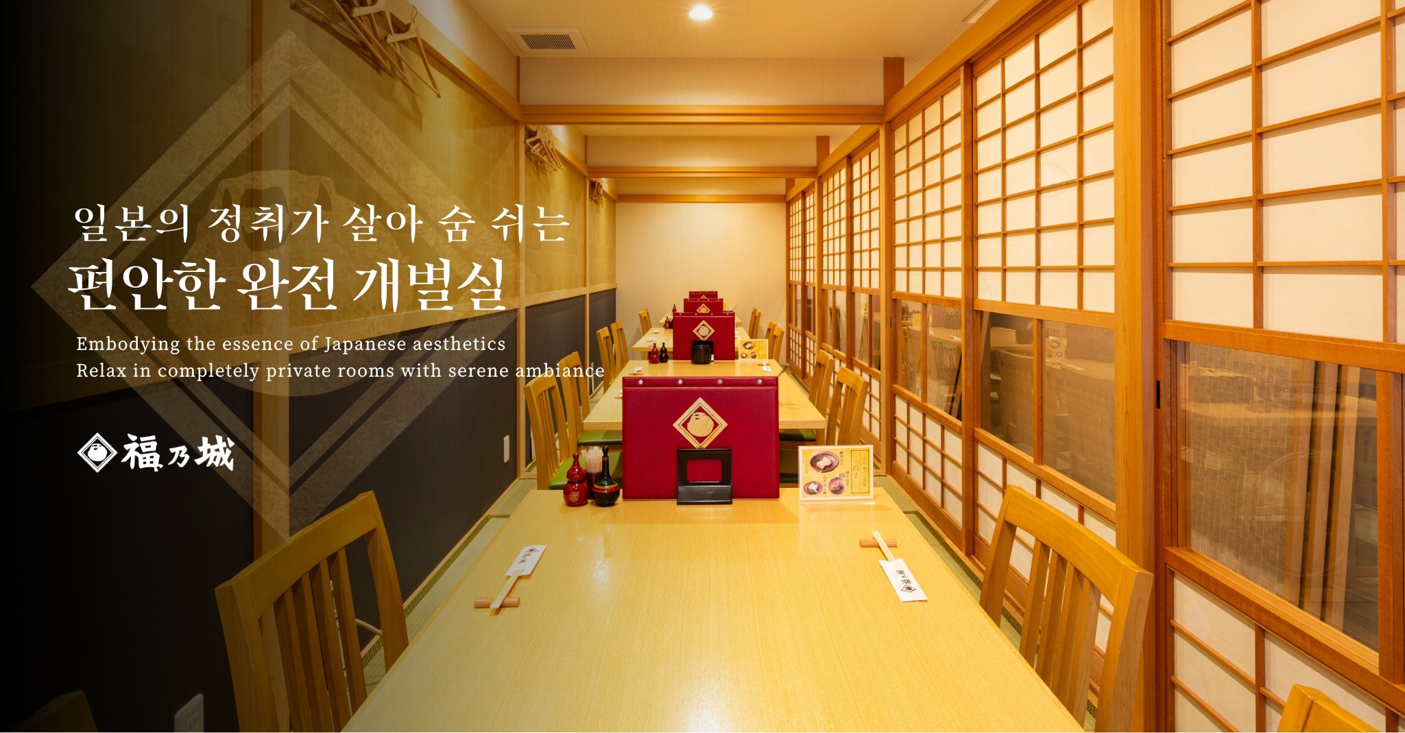 완전 개별실에서 마음껏 고급 요리를 즐겨보세요.